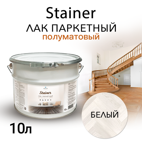 Купить Лак строительный паркетный белый полуматовый, для пола, для паркета, для стен, для мебели, для дерева Weiss natural product без запаха самовыравнивающийся 10л с доставкой по всей России.