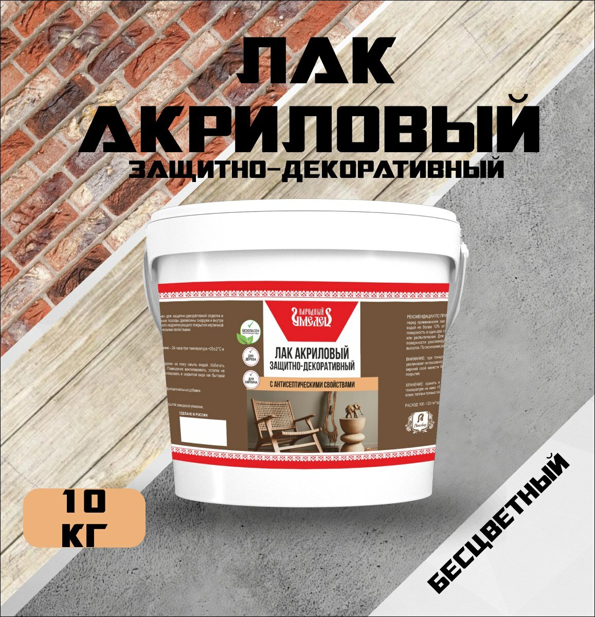 Купить Лак защитно-декоративный «Народный умелец» акриловый с антисептическими свойствами бесцветный 10кг с доставкой по всей России. Лак защитно-декоративный «Народный умелец» акриловый с антисептическими свойствами бесцветный 10кг: сравнение цен, характеристики, фото, актуальное наличие и цены.