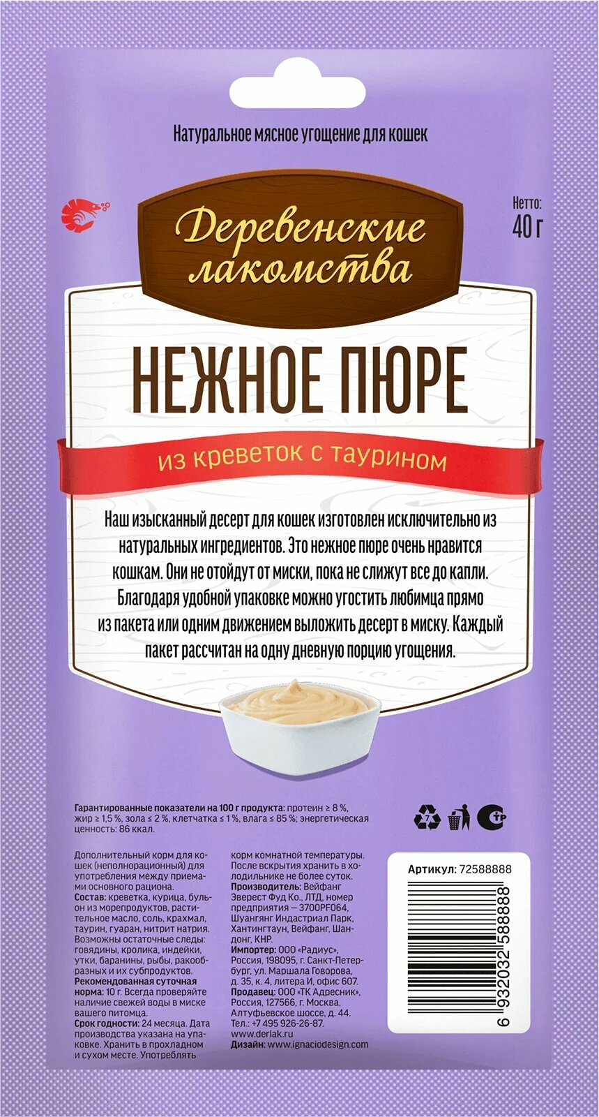 Купить Деревенские лакомства 10шт по 40г пюре из креветок для кошек с доставкой по всей России. Деревенские лакомства 10шт по 40г пюре из креветок для кошек: сравнение цен, характеристики, фото, актуальное наличие и цены.
