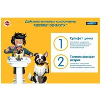 Педигри Denta Stiks Пластинки для снятия зубного камня у собак мелких пород. По статистике 4 из 5 собак в возрасте старше 3х лет страдают от заболеваний зубов и десен. Лакомство по уходу за зубами Pedigree Denta Stix - это уникальная возможность ухаживать за зубами питомца во время еды. Клинически доказано, что ежедневное использование Pedigree Denta Stix снижает уровень образования зубного камня до 80%, предотвращает риск развития заболеваний полости рта. Denta Stix. Собакам тоже нужно чистить зубы каждый день. Ингредиенты: злаки, продукты растительного происхождения, минералы, мясо и субпродукты, белковые растительные экстракты, масла и жиры, ароматизатор куриный натуральный (572 мг). Анализ: белок - 9 г, жир - 1,8 г, зола - 5,8 г, клетчатка - 2,3 г, влажность - 10,5г, триполифосфат натрия - 2,5 г, сульфат цинка - 104,5мг.