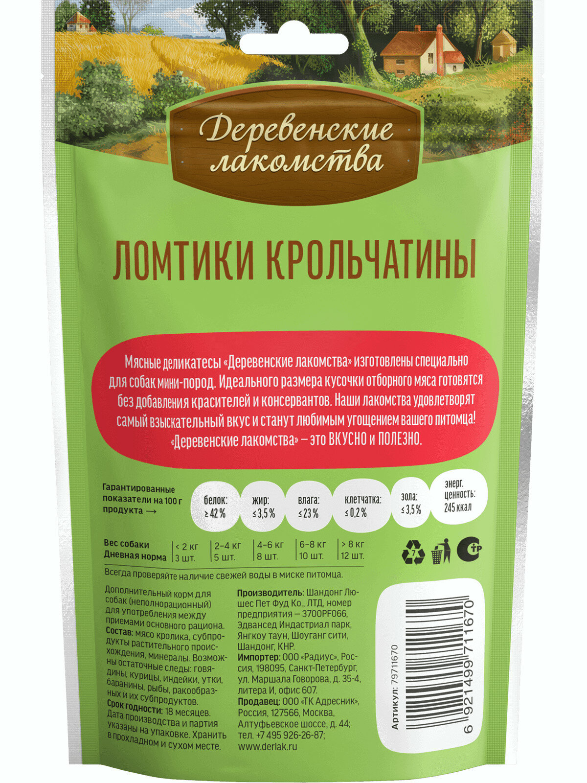 Диетические ломтики из нежнейшей крольчатины — легко усваиваются, абсолютно гипоаллергенны и к тому же обладают тонким, изысканным вкусом. Состав: мясо кролика. Гарантированные показатели на 100 г продукта: белок — 42,0 г, жир — 3,5 г, влага — 23,0 г, клетчатка — 0,2 г, зола — 3,5 г. Энергетическая ценность в 100 г продукта: 245,00 ккал. Товар сертифицирован. Уважаемые клиенты! Обращаем ваше внимание на возможные изменения в дизайне упаковки. Поставка осуществляется в зависимости от наличия на складе. Тайная жизнь домашних животных: чем занять собаку, пока вы на работе.