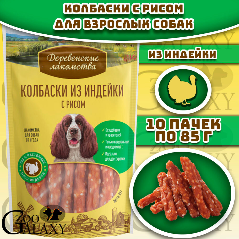Деревенские лакомства Колбаски из индейки с рисом 100 % мяса для собак 10х85 г: сравнение цен, характеристики, фото, актуальное наличие и цены.
