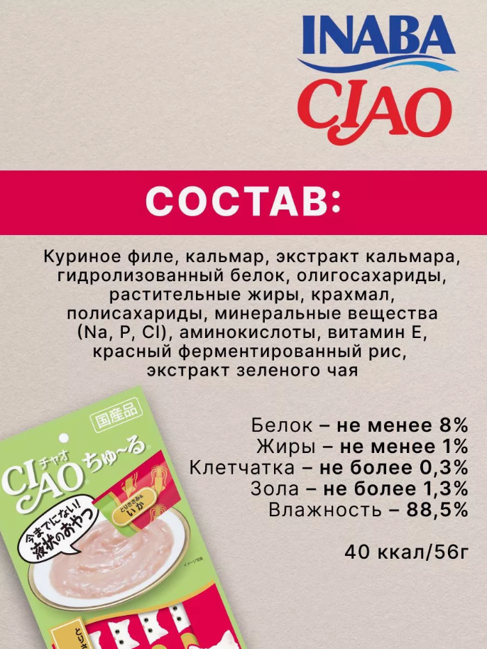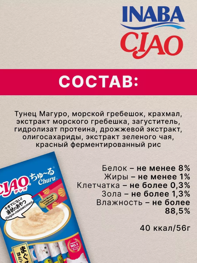 Лакомство для кошек Inaba Ciao Churu пюре Ассорти с морепродуктами, 20 шт по 14 гр (4 вкуса по 5 шт): сравнение цен, характеристики, фото, актуальное наличие и цены.