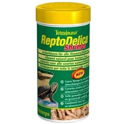 Лакомство с креветкой для водяных черепах Tetra ReptoMin Delica Shrimps 1LTetra ReptoMin Delica Shrimps (Тетра Мин Делика Шримпс) - настоящее лакомство для водных черепах, основным компонентом которого являются цельные креветки. Корм расфасован по 250 мл. В составе продукта содержится множество минералов, которые черепахам необходимы для правильного и здорового формирования панциря и развития костей. Креветки являются излюбленным продуктом черепах, поэтому корм является идеальным дополнением к основному питанию Tetra ReptoMin.
