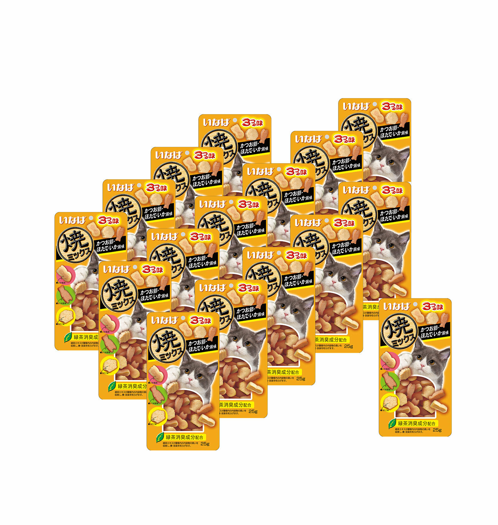 Купить Лакомство запеченное INABA Yakimiksu ассорти для кошек cо вкусом кацуобуси, морского гребешка и кальмара 25г х 16 шт. с доставкой по всей России.