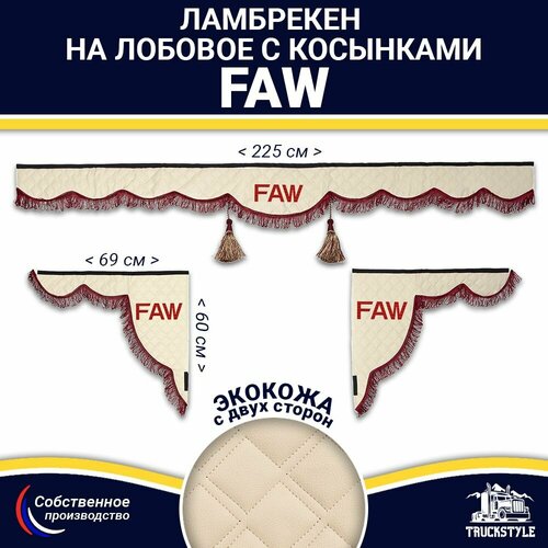 Купить Ламбрекен с косынками двусторонний на лобовое FAW. Бежевый цвет с бордовыми кисточками. Ткань экокожа (лицо, изнанка). Аксессуар для грузовика Фав с доставкой по всей России. Ламбрекен с косынками двусторонний на лобовое FAW. Бежевый цвет с бордовыми кисточками. Ткань экокожа (лицо, изнанка). Аксессуар для грузовика Фав: сравнение цен, характеристики, фото, актуальное наличие и цены.