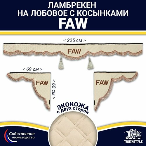 Купить Ламбрекен с косынками двусторонний на лобовое FAW. Бежевый цвет с коричневыми кисточками. Ткань экокожа (лицо, изнанка). Аксессуар для грузовика Фав с доставкой по всей России. Ламбрекен с косынками двусторонний на лобовое FAW. Бежевый цвет с коричневыми кисточками. Ткань экокожа (лицо, изнанка). Аксессуар для грузовика Фав: сравнение цен, характеристики, фото, актуальное наличие и цены.