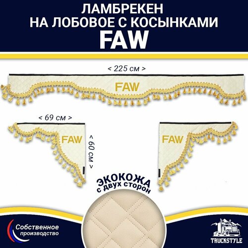 Купить Ламбрекен с косынками двусторонний на лобовое FAW. Бежевый цвет с золотыми кисточками. Ткань экокожа (лицо, изнанка). Аксессуар для грузовика Фав с доставкой по всей России. Ламбрекен с косынками двусторонний на лобовое FAW. Бежевый цвет с золотыми кисточками. Ткань экокожа (лицо, изнанка). Аксессуар для грузовика Фав: сравнение цен, характеристики, фото, актуальное наличие и цены.