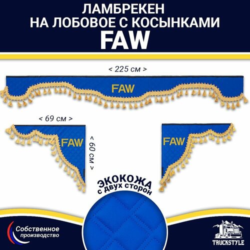 Купить Ламбрекен с косынками двусторонний на лобовое FAW. Синий цвет с золотыми кисточками. Ткань экокожа (лицо, изнанка). Аксессуар для грузовика Фав с доставкой по всей России. Ламбрекен с косынками двусторонний на лобовое FAW. Синий цвет с золотыми кисточками. Ткань экокожа (лицо, изнанка). Аксессуар для грузовика Фав: сравнение цен, характеристики, фото, актуальное наличие и цены.
