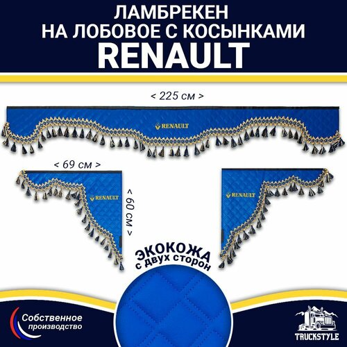Купить Ламбрекен с косынками двусторонний на лобовое RENAULT. Синий цвет с синими кисточками. Ткань экокожа (лицо, изнанка). Аксессуар для грузовика Рено с доставкой по всей России. Ламбрекен с косынками двусторонний на лобовое RENAULT. Синий цвет с синими кисточками. Ткань экокожа (лицо, изнанка). Аксессуар для грузовика Рено: сравнение цен, характеристики, фото, актуальное наличие и цены.