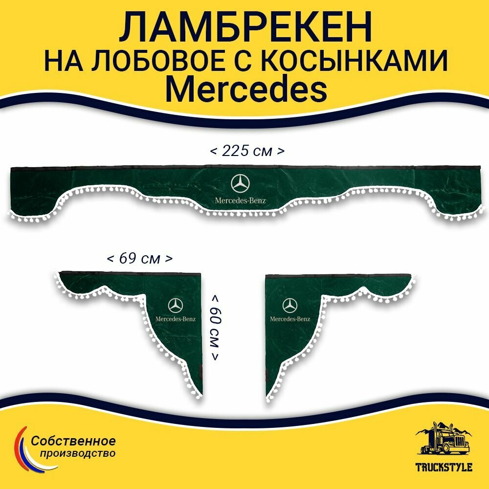 Ламбрекен с косынками на лобовое MERCEDES. Зеленый цвет с белыми шариками. Ткань флок.: сравнение цен, характеристики, фото, актуальное наличие и цены.