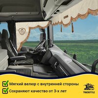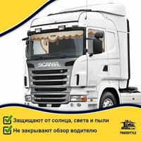 Шторка автомобильная SCANIA для грузовиков. Комплект ламбрекен с косынками. Шторки солнцезащитные на лобое и боковые двери. Бежевый цвет с коричневыми кистями Truck Style: сравнение цен, характеристики, фото, актуальное наличие и цены.