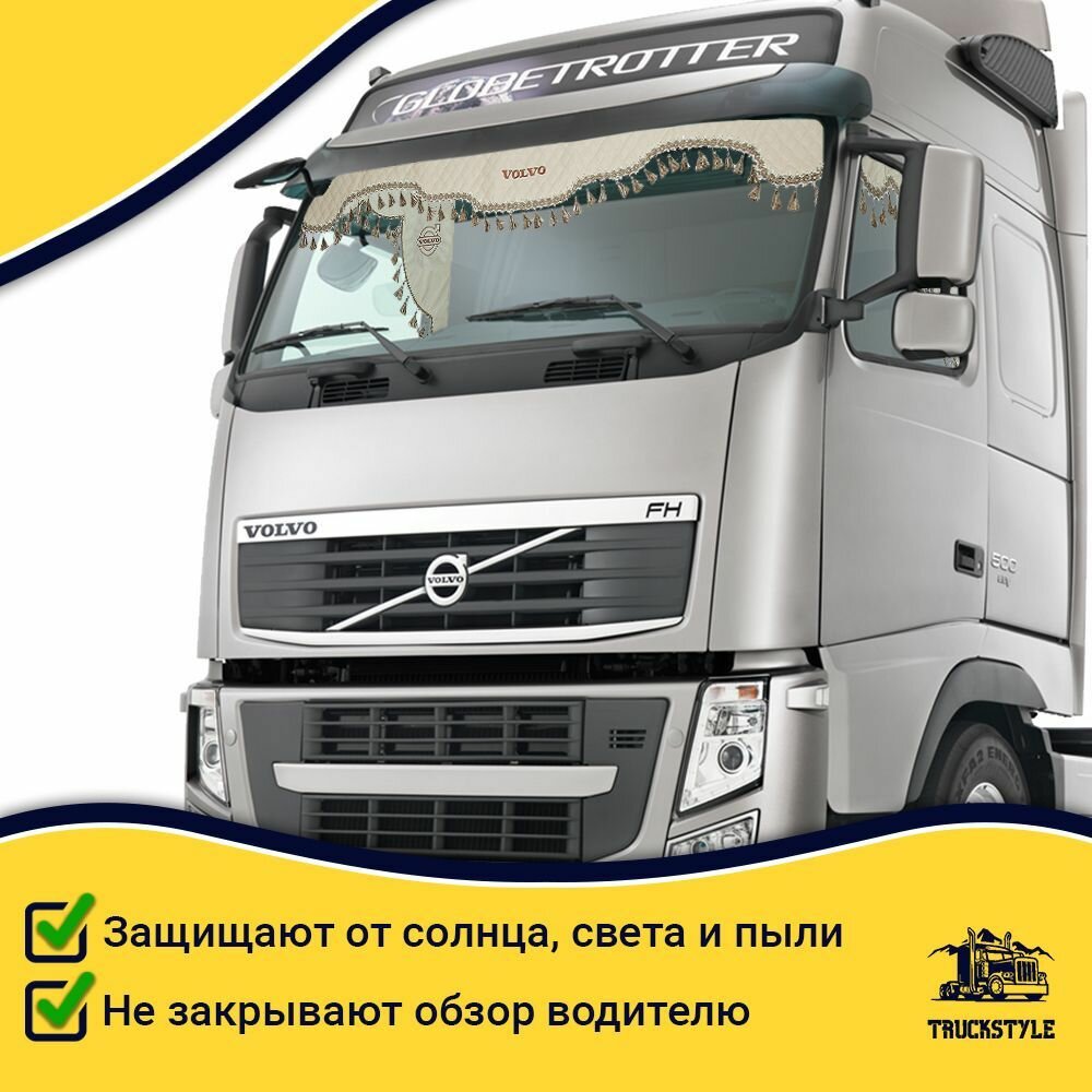Шторка автомобильная VOLVO для грузовиков. Комплект ламбрекен с косынками. Шторки солнцезащитные на лобое и боковые двери. Бежевый цвет с бежевыми кистями Truck Style: сравнение цен, характеристики, фото, актуальное наличие и цены.