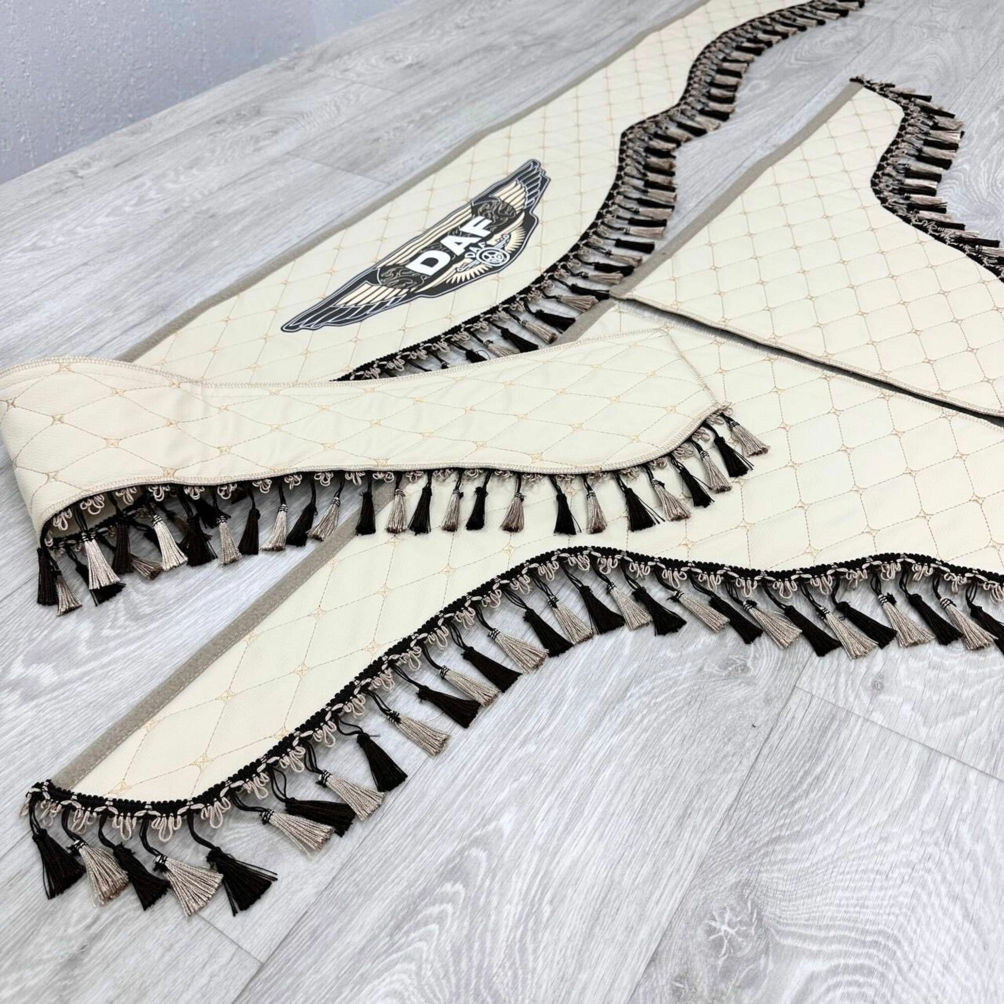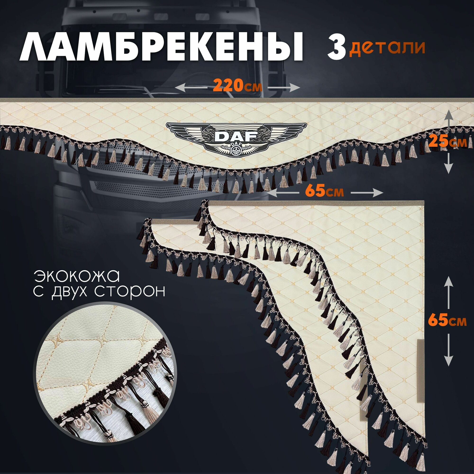 Купить Ламбрекены на грузовик в кабину авто из экокожи DAF (Бежевый) с доставкой по всей России.