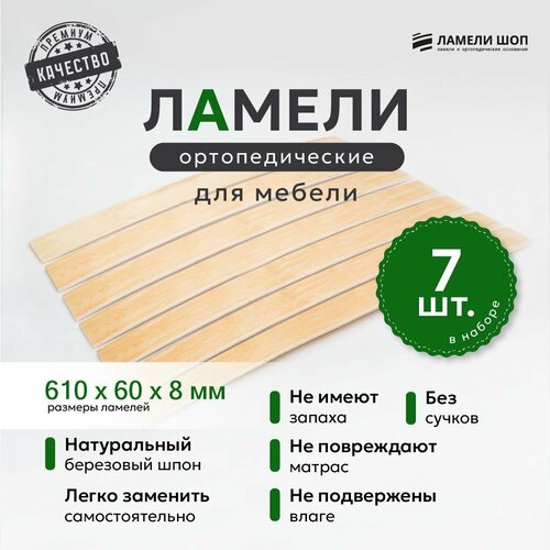 Купить Ламели для кровати и дивана ортопедические 610/60/8. Рейки для кровати комплект из 7 шт с доставкой по всей России. Ламели для кровати и дивана ортопедические 610/60/8. Рейки для кровати комплект из 7 шт: сравнение цен, характеристики, фото, актуальное наличие и цены.