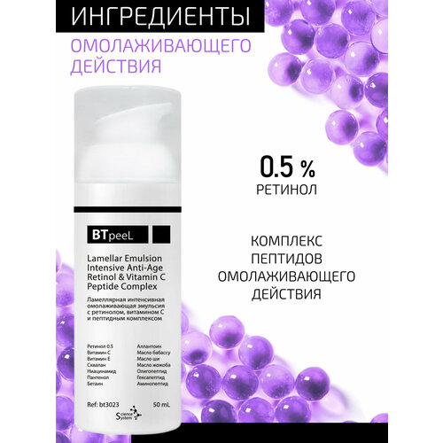 Купить Ламеллярная интенсивная омолаживающая эмульсия с ретинолом, витамином С и пептидным комплексом BTpeel, 50 мл с доставкой по всей России. Ламеллярная интенсивная омолаживающая эмульсия с ретинолом, витамином С и пептидным комплексом BTpeel, 50 мл: сравнение цен, характеристики, фото, актуальное наличие и цены.