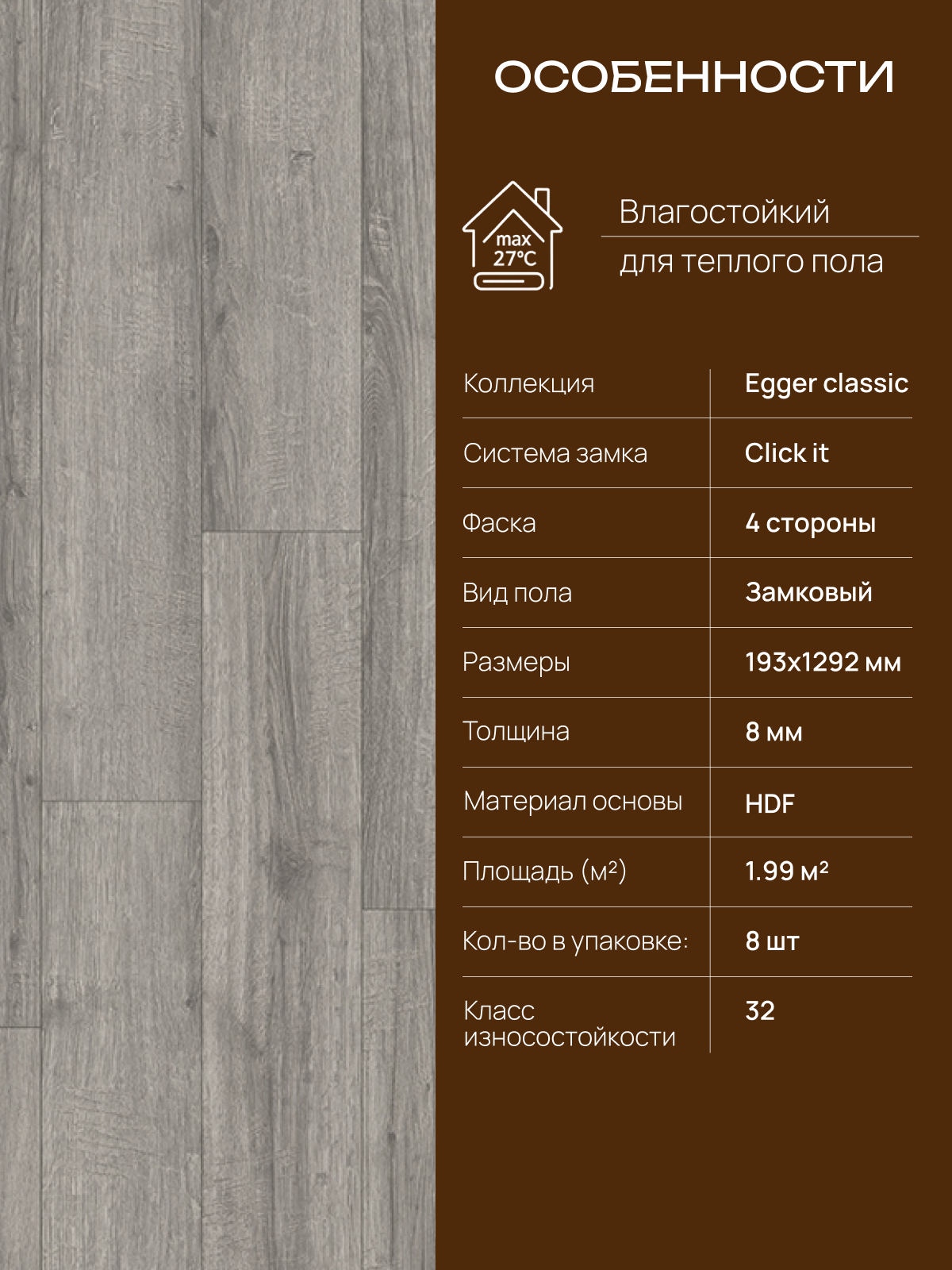 Ламинат Egger EPL205 Classic 8/32 4V, Дуб Шерман светло-серый: сравнение цен, характеристики, фото, актуальное наличие и цены.