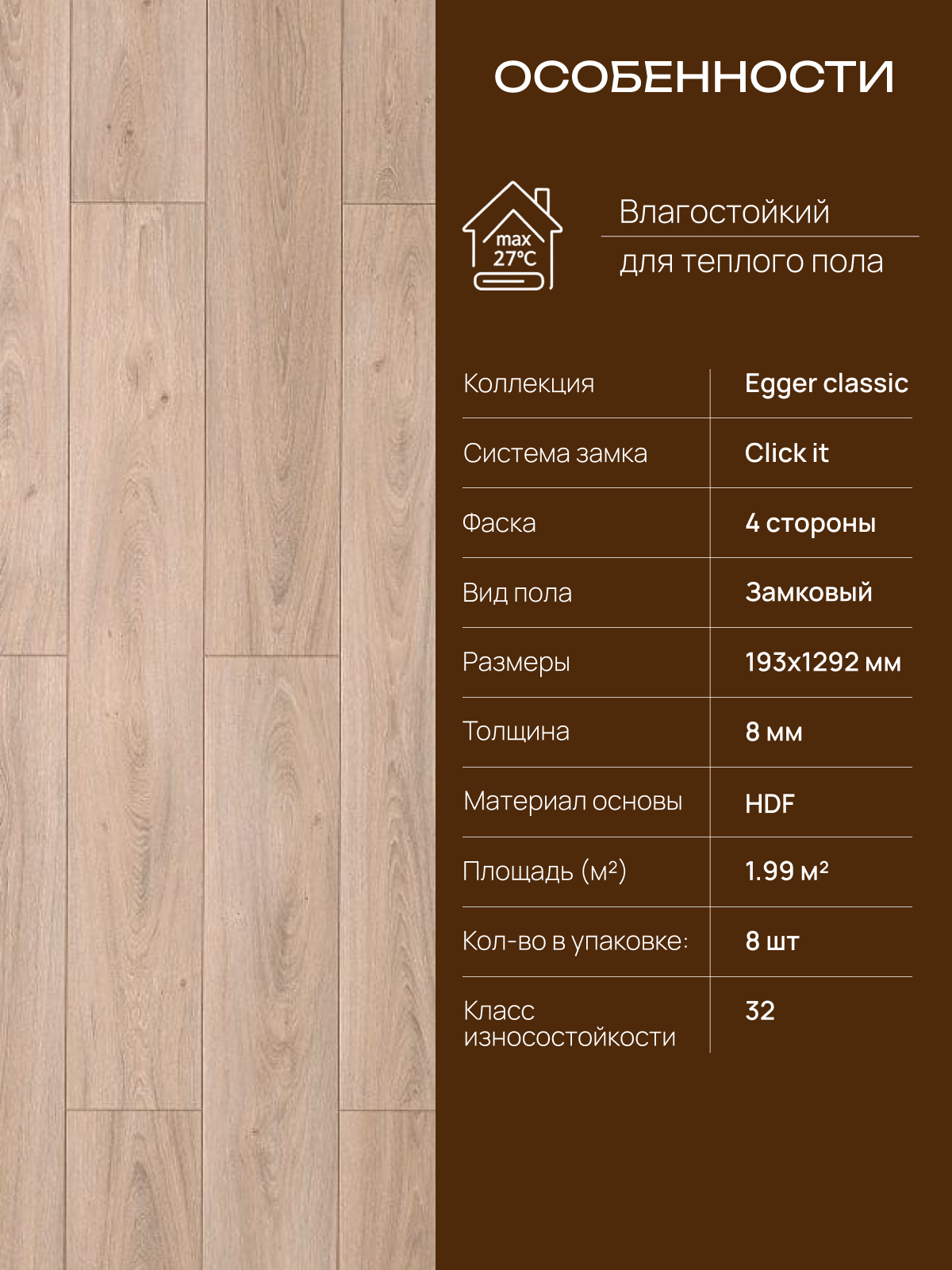Ламинат Egger «Pro Classic» EPL102, влагостойкий, для теплого пола, Амьен дуб светлый, 8мм: сравнение цен, характеристики, фото, актуальное наличие и цены.