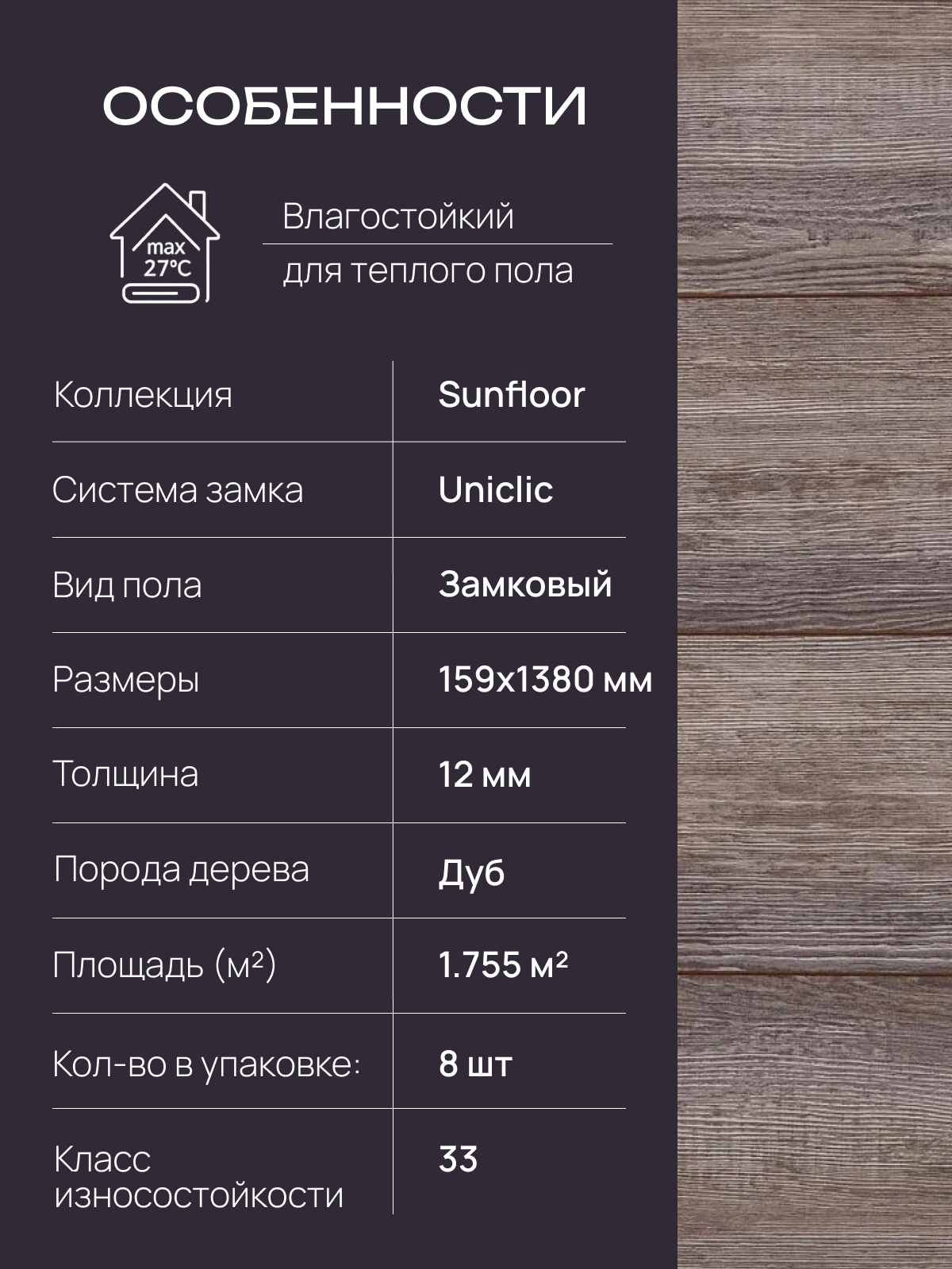 Ламинат Kastamonu «Sunfloor», 12мм, 33класс, дуб сплит, влагостойкий, для теплого пола: сравнение цен, характеристики, фото, актуальное наличие и цены.