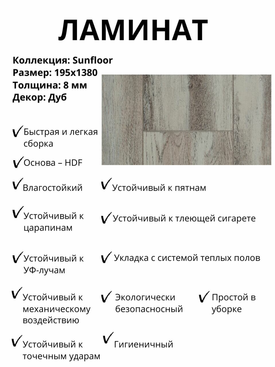 Купить Ламинат Kastamonu SUNFLOOR «Дуб Форвард», 8 мм (8штук/2.15 м2), упаковка с доставкой по всей России. Ламинат Kastamonu SUNFLOOR «Дуб Форвард», 8 мм (8штук/2.15 м2), упаковка: сравнение цен, характеристики, фото, актуальное наличие и цены.