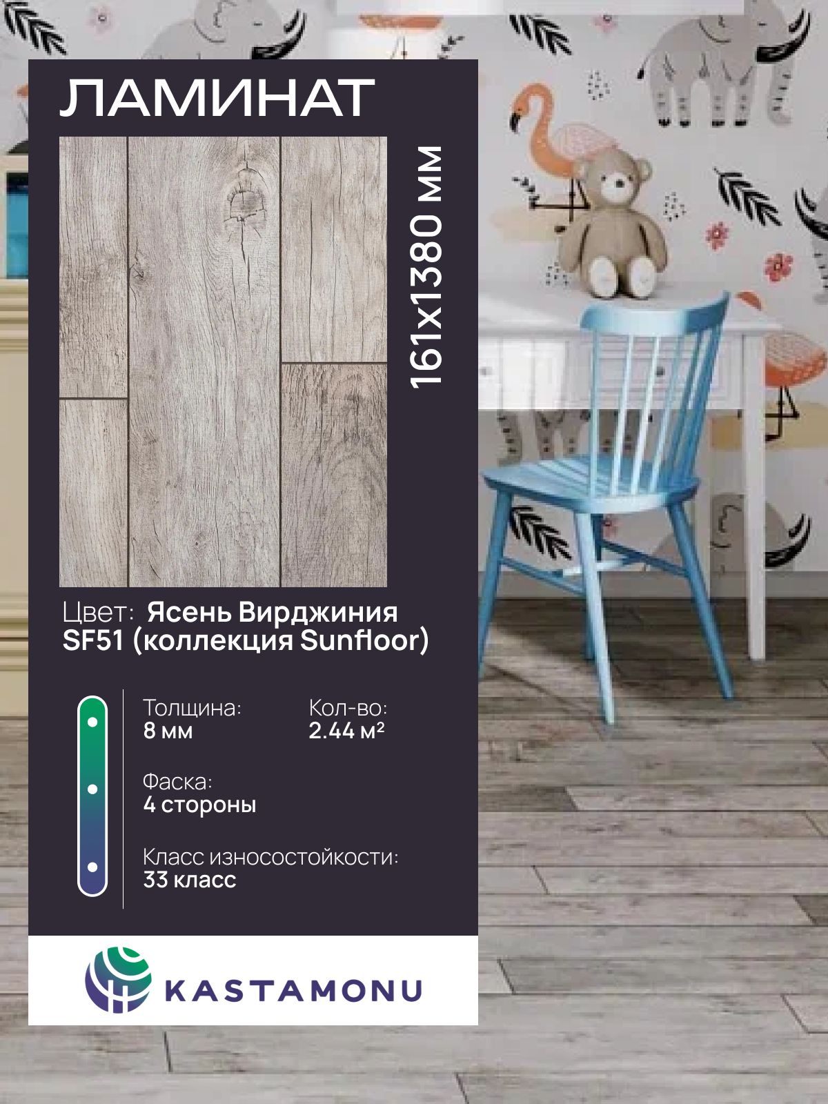 Ламинат Kastamonu Sunfloor 8/33 SF51 Ясень Вирджиния: сравнение цен, характеристики, фото, актуальное наличие и цены.