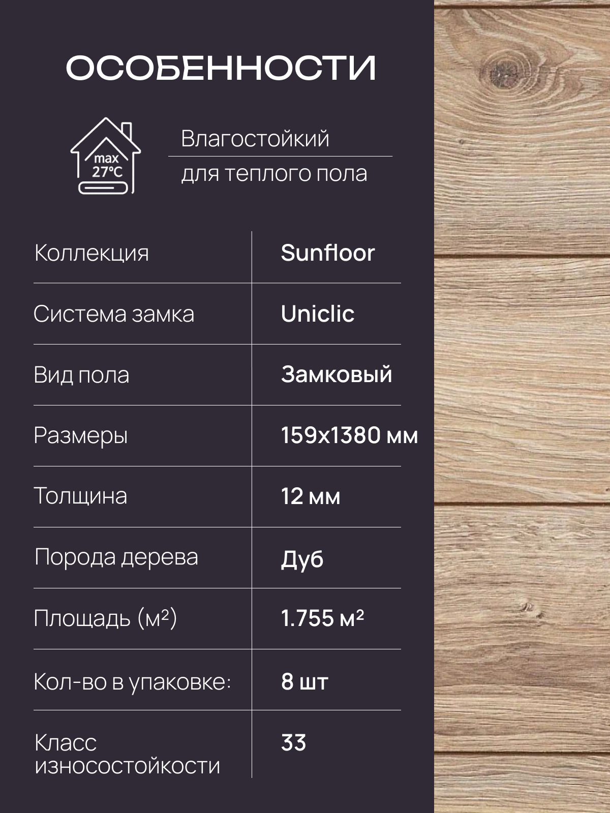 Ламинат Kastamonu «Sunfloor» SF104, влагостойкий, для тёплого пола, 12 класс, бежевый, дуб Самора: сравнение цен, характеристики, фото, актуальное наличие и цены.