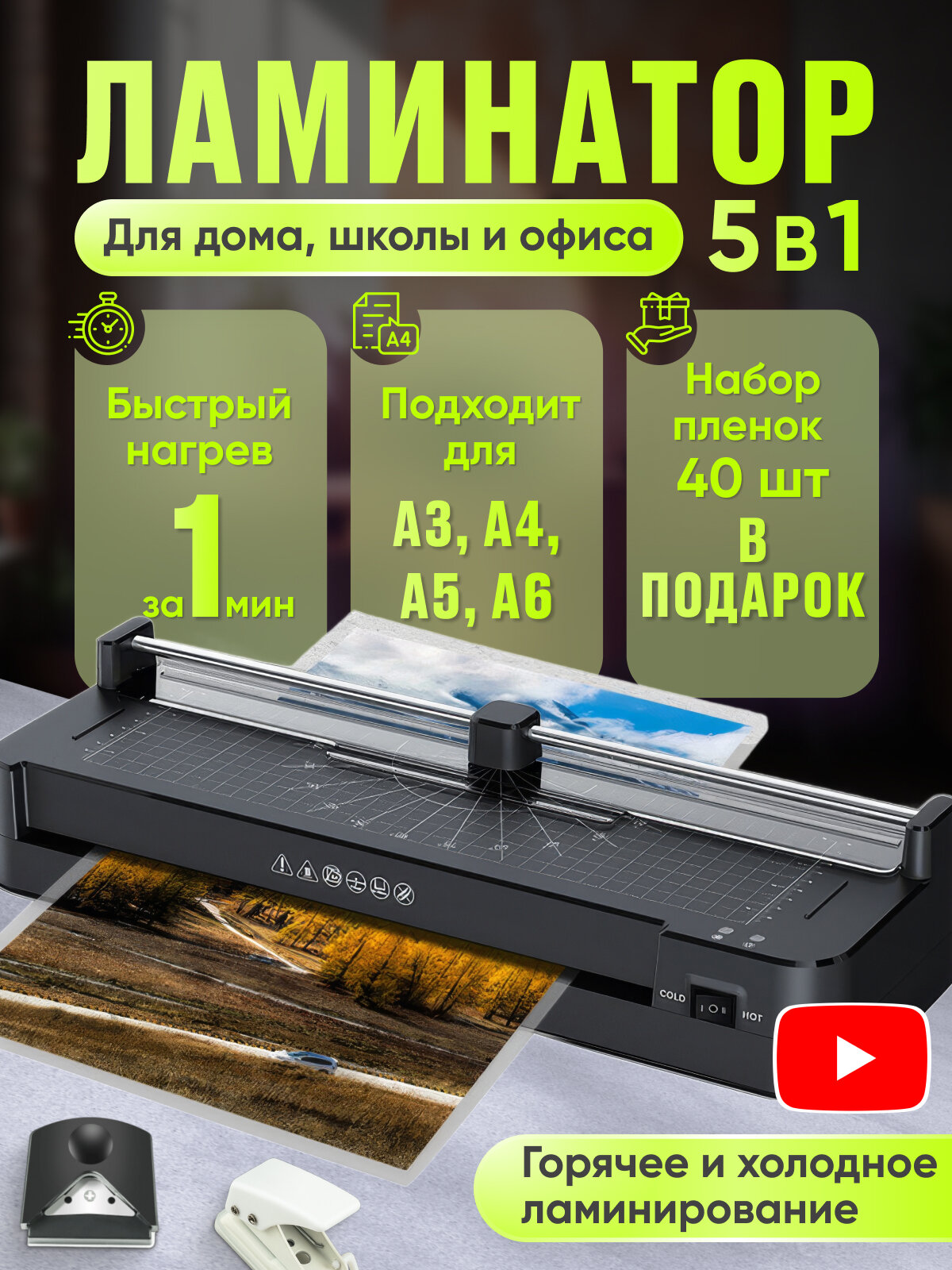 На устройстве установлены удобная линейка, обрезчик Вы получаете в подарок! Пластик не потрескается со временем, не выгорит и не обесцветит Ваши любимые фото или важные документы. Ламинатор легко справится с А 3, А 4, А 5, А 6, подойдет также для визиток и близких сердцу фотографий.