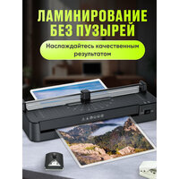 Настольная ламинирующая машинка не занимает много места, её размеры 122х428х65мм, а простое и интуитивно понятное управление подвластно даже ребенку. Вам удастся легко освоить гаджет.