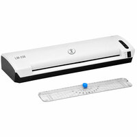 Система нагрева: горячие валы с внешним нагревом; Индикаторы: питание включено, готовность к работе Рычаг отключения вращения валов в случае замятия заготовки Резак для бумаги А4 (305ММ) и обрезчик углов R 3,0мм в комплекте Корпус: пластик