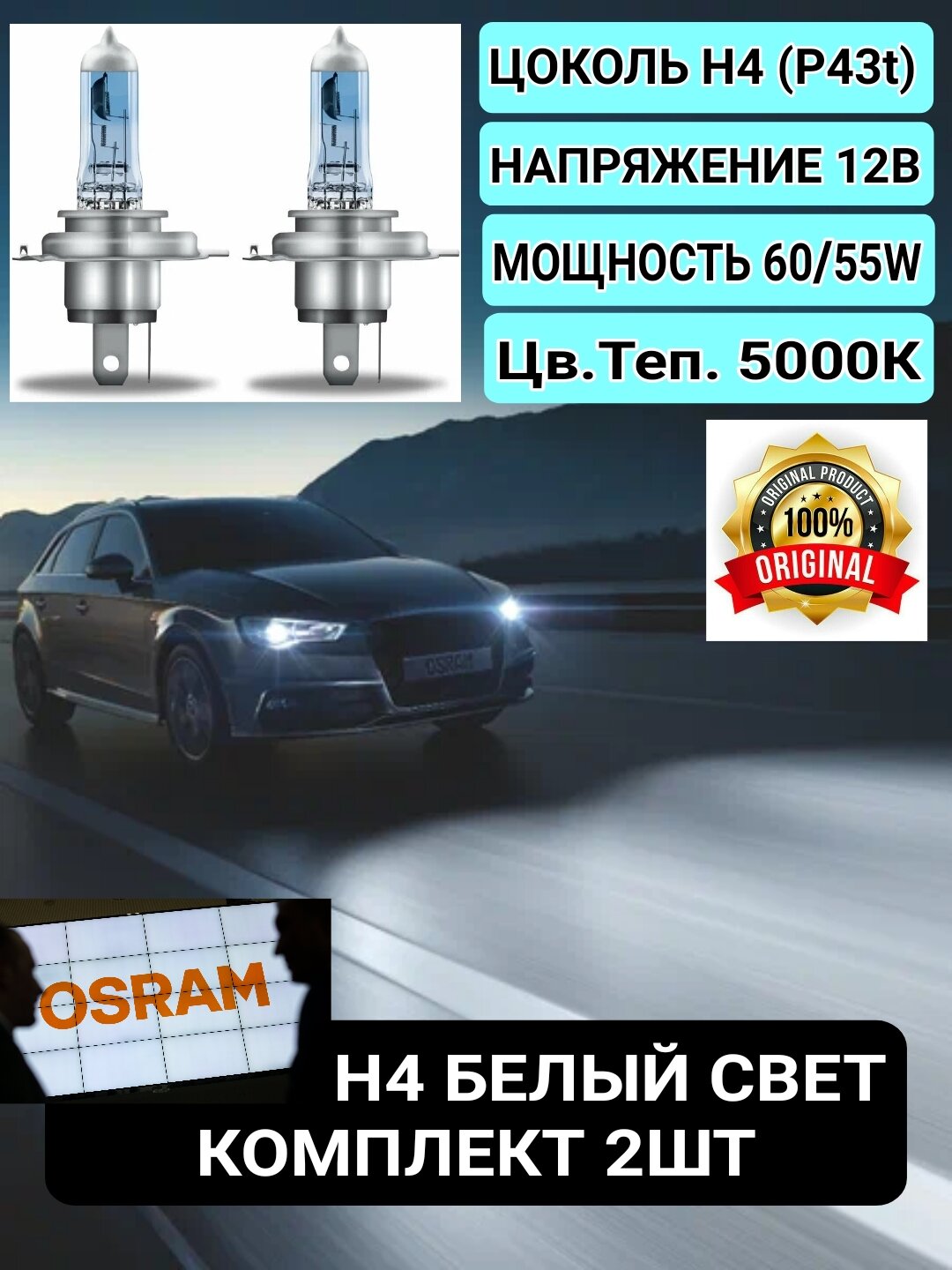 Лампа автомобильная белая 2шт. OSRAM H4 12V 55/60W 5000K галогеновая: сравнение цен, характеристики, фото, актуальное наличие и цены.