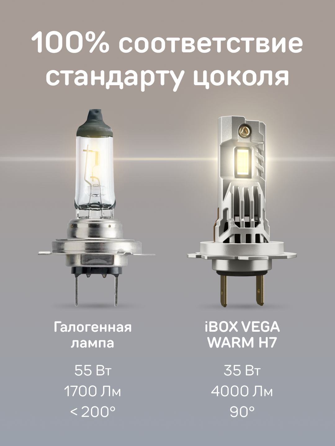 Лампа автомобильная iBOX VEGA WARM H7, 35Вт, теплый свет, IP65, 4300К, 2шт: сравнение цен, характеристики, фото, актуальное наличие и цены.