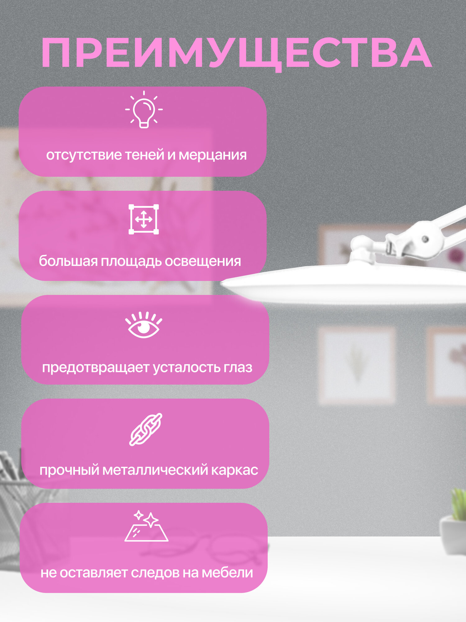 Лампа бестеневая Premium, LED, 5 режимов, 117 светодиодов, крепление струбцина, белая: сравнение цен, характеристики, фото, актуальное наличие и цены.