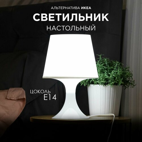 Настольный светильник предназначен для общего интерьерного освещения помещений. Цвет изделия ‒ белый, размеры: Ø19,5 х 28 см. Материал корпуса изделия ‒ пластик, материал плафона ‒ пластик. Тип патрона E14. Рекомендуем использовать энергосберегающую лампу мощностью до 15 Вт (в комеплект не входит).