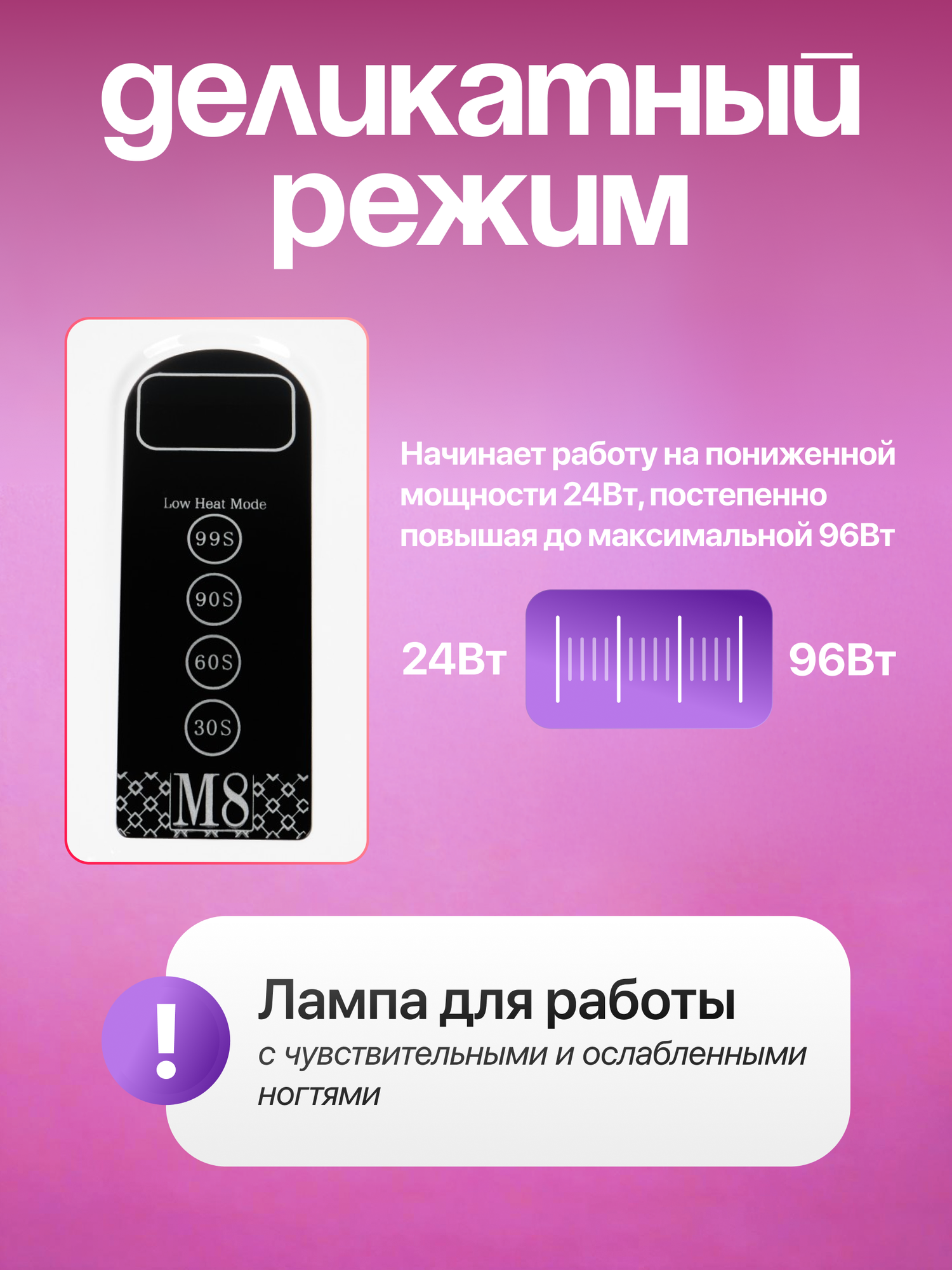 Профессиональная лампа M8 мощностью 96w предназначена для сушки гель лаков, всех видов баз и топов.