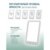 Лампа для светотерапии подарит хорошее настроение вам и вашим близким. Светодиодная лампа служит для профилактики сезонной депрессии SAD. Если вы с наступлением зимы чувствуете упадок сил, апатию, грусть, бессонницу или вам трудно просыпаться на работу, снизилась трудоспособность и обучаемость, то вероятно у вас появилась зимняя депрессия. Одним из наиболее эффективных способов победить депрессию признана светотерапия или фототерапия. Белый солнечный свет в диапазоне 2 500 до 10 000 люкс, устраняет симптомы SAD. Это отличная альтернатива препаратам и лекарствам антидепрессантам. Лампа для фототерапии обеспечивает полный спектр дневного света, который стимулирует глазные фоторецепторы, отвечающие за хорошее настроение и желание жить и работать. Поставьте этот настольный светильник для фототерапии сбоку от себя на расстоянии 15 - 30 см. Два раза в день на 15 - 30 мин. дома и на работе (легко брать с собой) занимайтесь привычными делами. Забудьте о хандре и депрессии!