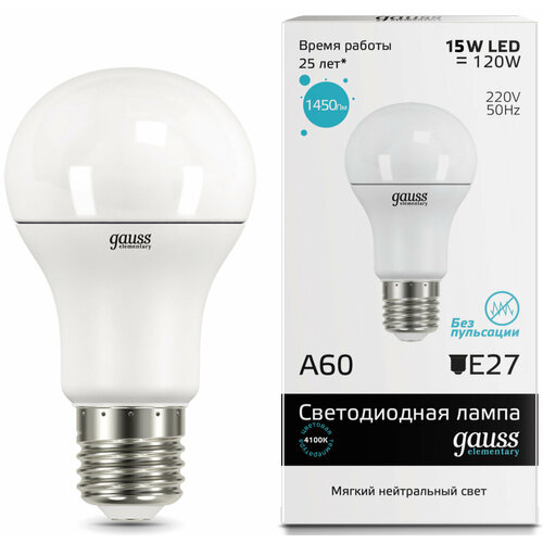 Купить Лампа LED A60 15W E27 4100K Gauss Elementary 23225 с доставкой по всей России.