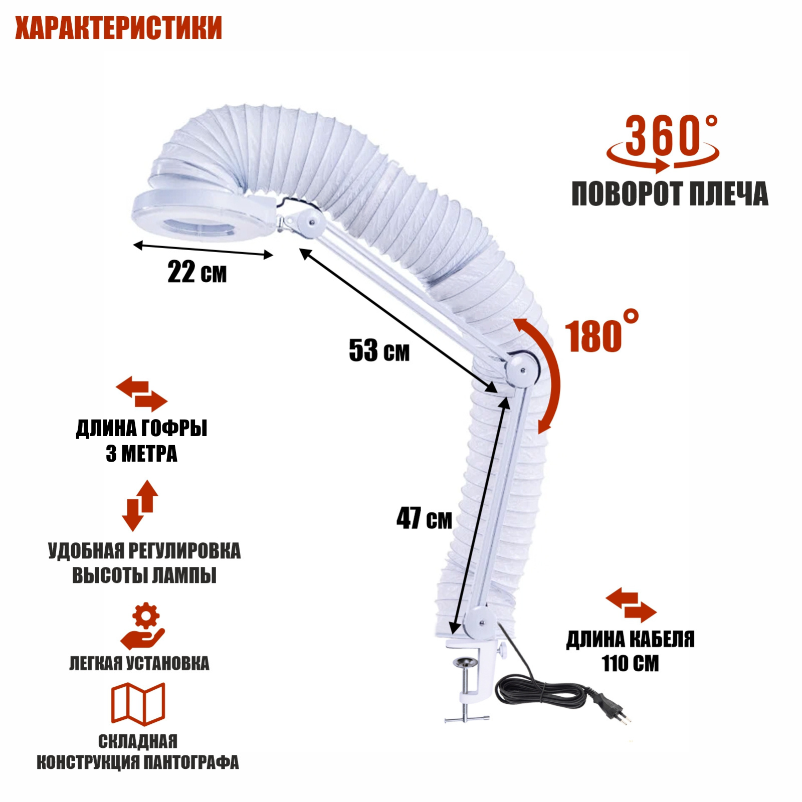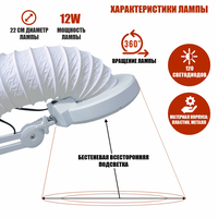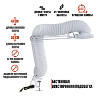 Лампа LN-5-GOF300 с гофрой представляет собой стильное и функциональное устройство, специально разработанное для использования в процедурах маникюра и педикюра. Зажим позволяет прикрепить лампу к горизонтальной поверхности толщиной до 50 мм, что позволит освободить место на рабочем столе. Используется в косметологии, в тату салонах, салонах красоты, а также там, где требуется подсветка рабочего поля. Лампа с гофрой для установки вытяжки позволяет проводить процедуры комфортно и без лишних запахов и пыли. Вытяжка - это помощник всех мастеров красоты, она позволяет минимизировать запахи, например, от клея, а также избавиться от небольших пыльных загрязнений, что играет важную роль в поддержании чистоты и безопасности рабочего места мастера и комфорта для клиента.