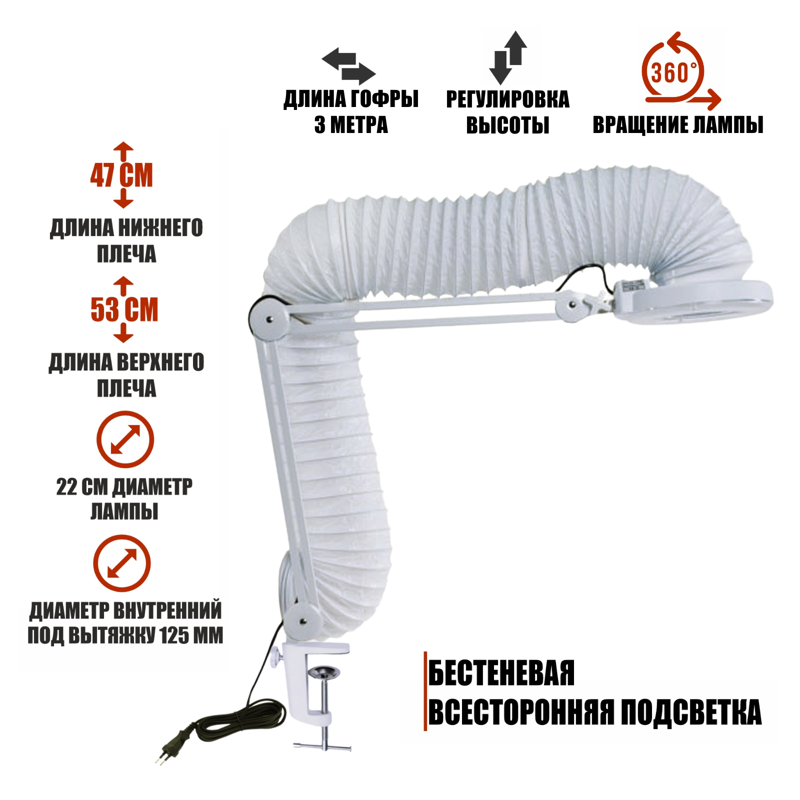 В комплекте: Лампа LN-5-GOF300 с гофрой 3м под вытяжку для маникюра и педикюра - 1 шт