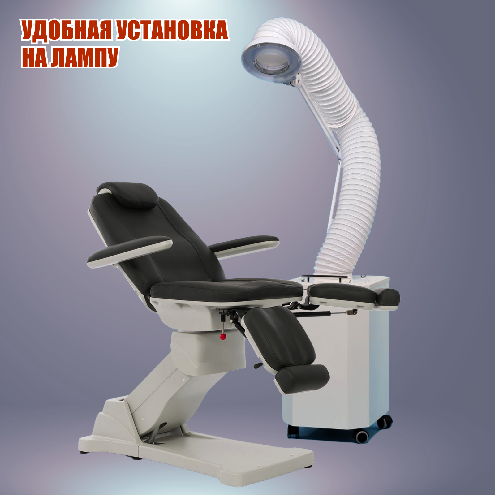 Лампа с гофрой для установки вытяжки позволяет проводить процедуры комфортно и без лишних запахов и пыли. Вытяжка - это помощник всех мастеров красоты, она позволяет минимизировать запахи, например, от клея, а также избавиться от небольших пыльных загрязнений, что играет важную роль в поддержании чистоты и безопасности рабочего места мастера и комфорта для клиента.