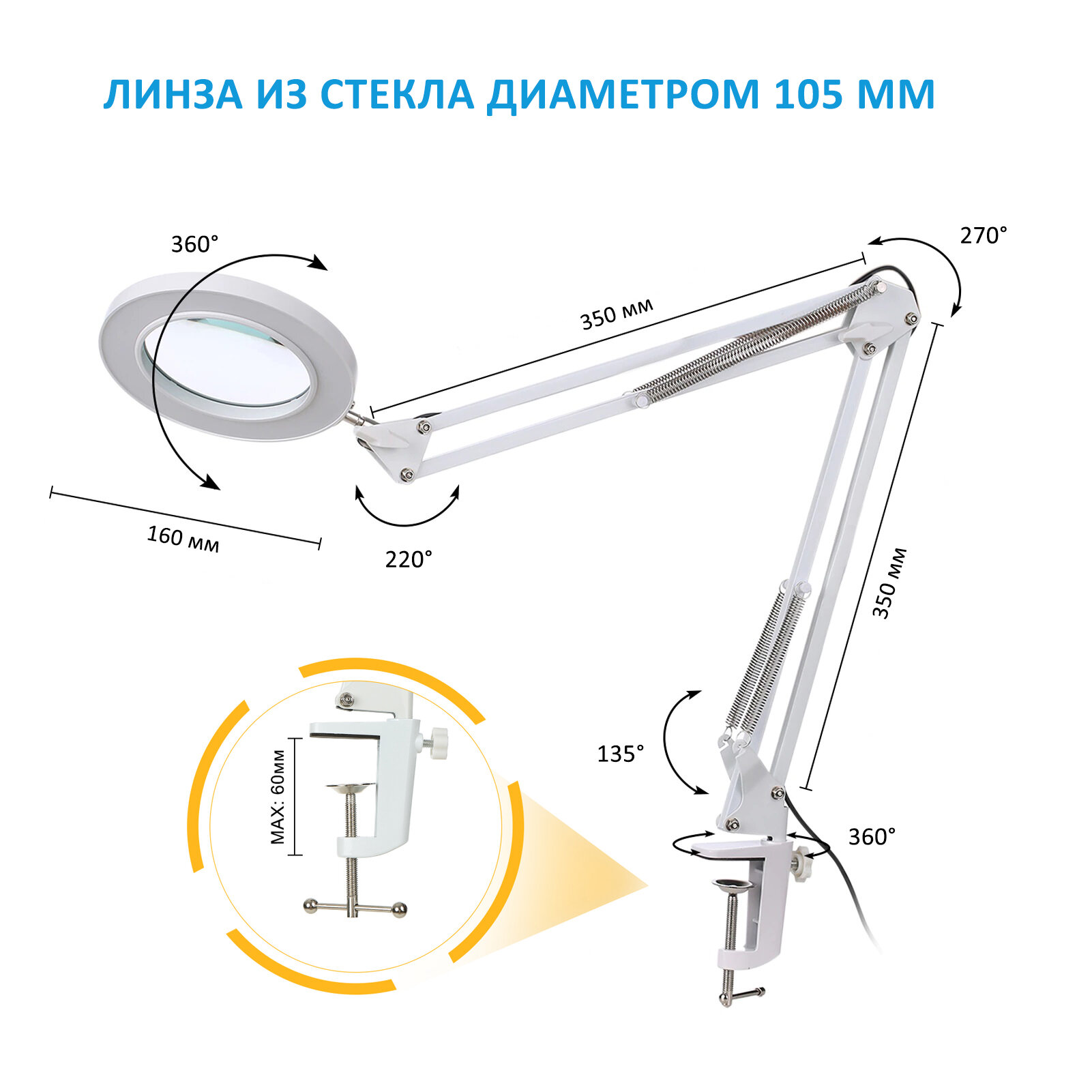 Лампа лупа с увеличительным стеклом на струбцине / светодиодная, бестеневая, косметологическая лампа — светильник для маникюра, педикюра: сравнение цен, характеристики, фото, актуальное наличие и цены.