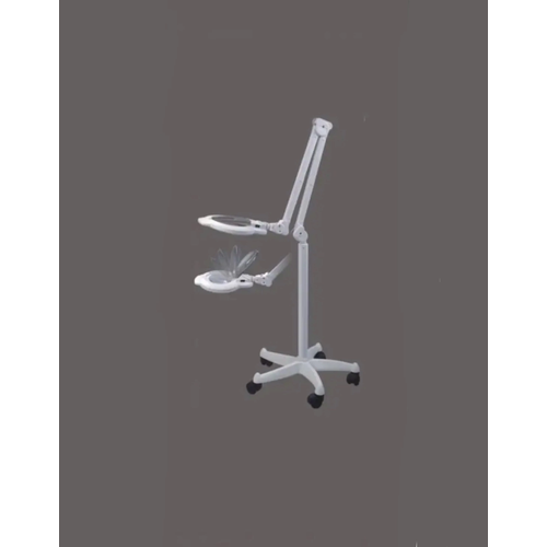 В лампе есть дополнительно встроенная линза с 20-ти кратным увеличением. Защитная крышка от повреждений. Для удобства работы положение ламмпы-лупы регулируется в 4 местах, а основанием служит пятилучие с колесами, которое обеспечивает не только хорошую опору, но и мобильность лампы-лупы
