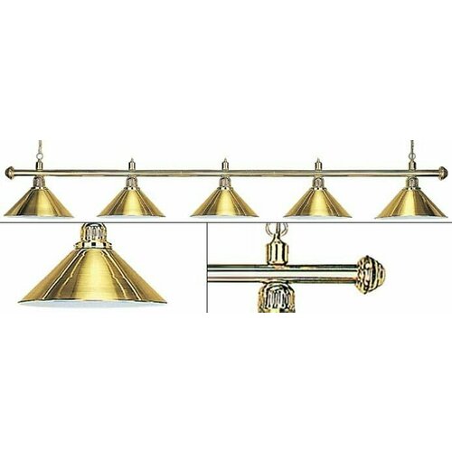 Изящная лампа классического дизайна органично впишется в любой интерьер. Устойчивые к механическим повреждениям металлические плафоны на металлической штанге обеспечивают не только качественное освещение игрового поля, но и создадут уютную атмосферу в бильярдном клубе или кабинете. Комплектуется цепочками и чашками для крепления к потолку. Предназначена для равномерного освещения игрового поля 10 - 12 футовых столов.