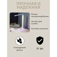 | Особенности | лампы в комплекте, регулировка наклона и поворота плафона, регулировка по высоте, регулировка яркости, режим ночника, складная конструкция |
