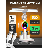 Лампа настольная для школьника светодиодный светильник с вентилятором RGB, 38см
