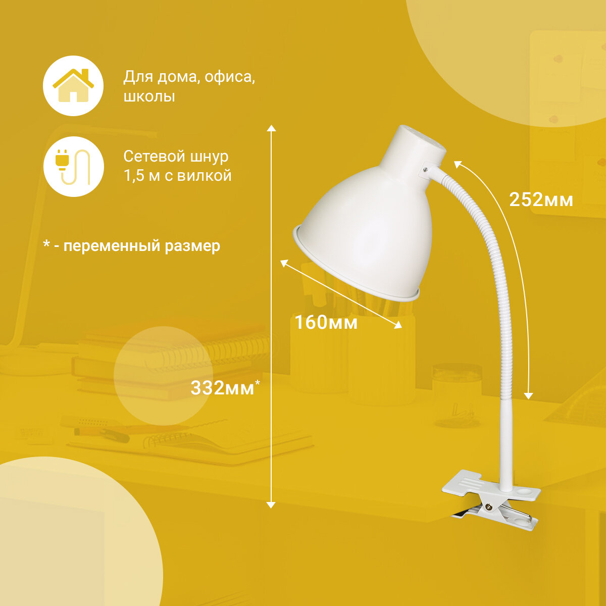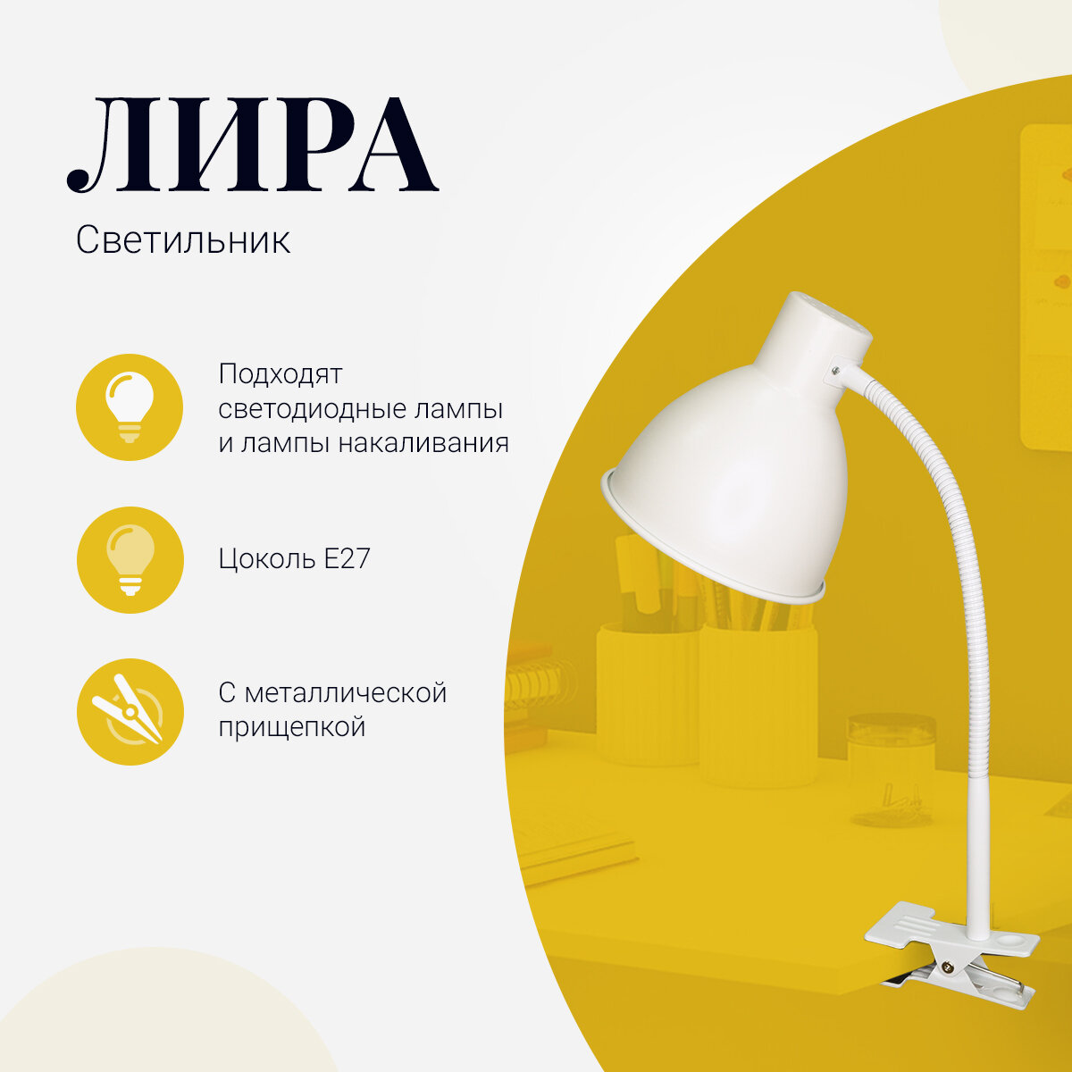 Лампа настольная классическая Трансвит Лира на прищепке, светильник для школы, учебы, офиса, Е27, белый: сравнение цен, характеристики, фото, актуальное наличие и цены.