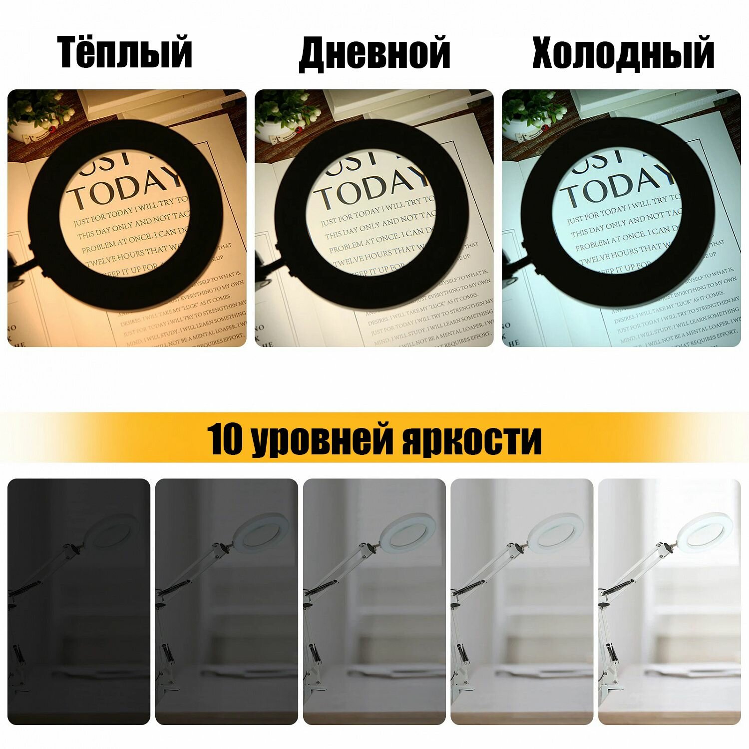 Купить Лампа настольная с лупой 10Х с подсветкой Орбита OT-INL88 Белая с доставкой по всей России.