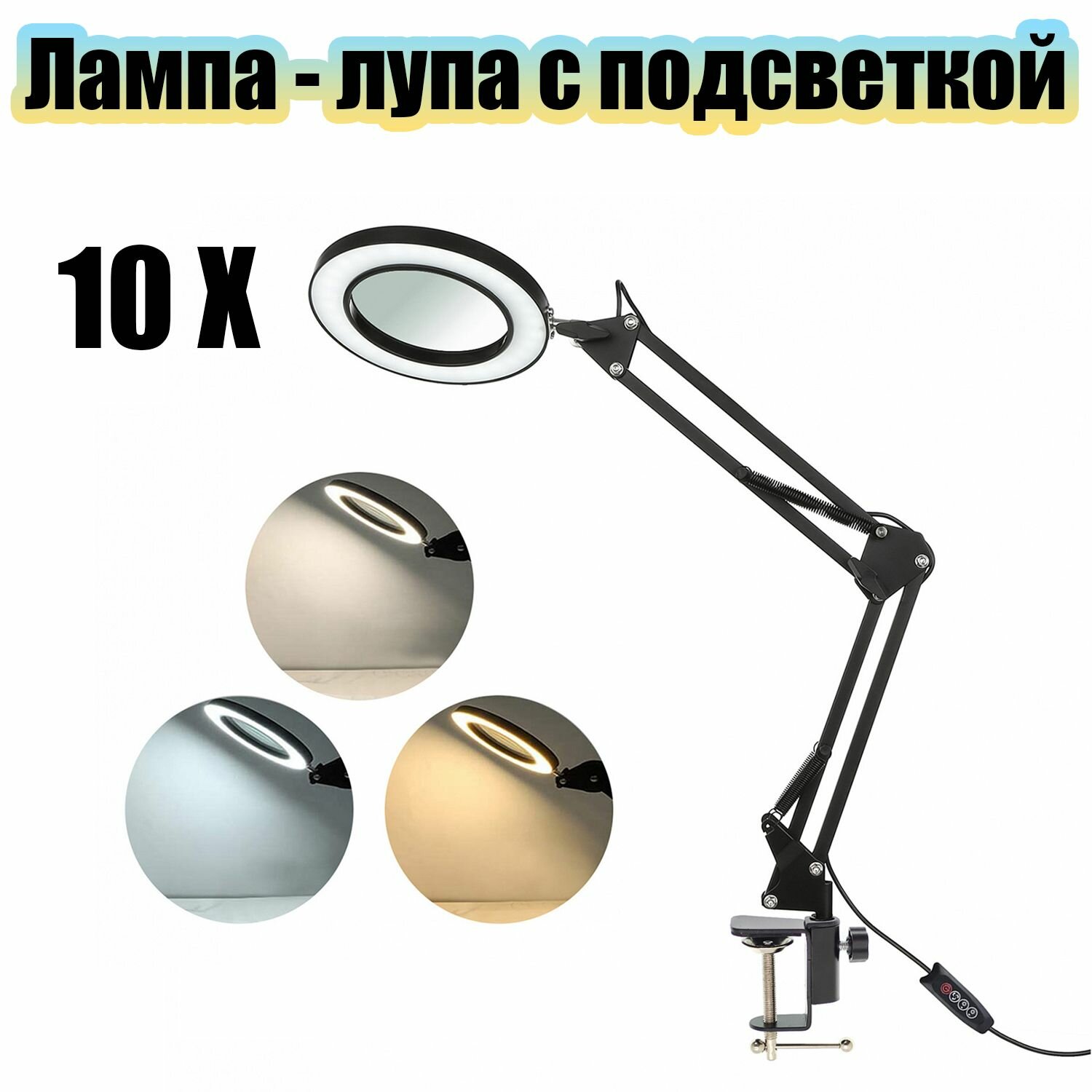 гибкая, держатель для предметов, лупа-лампа, на прищепке, на струбцине, настольная