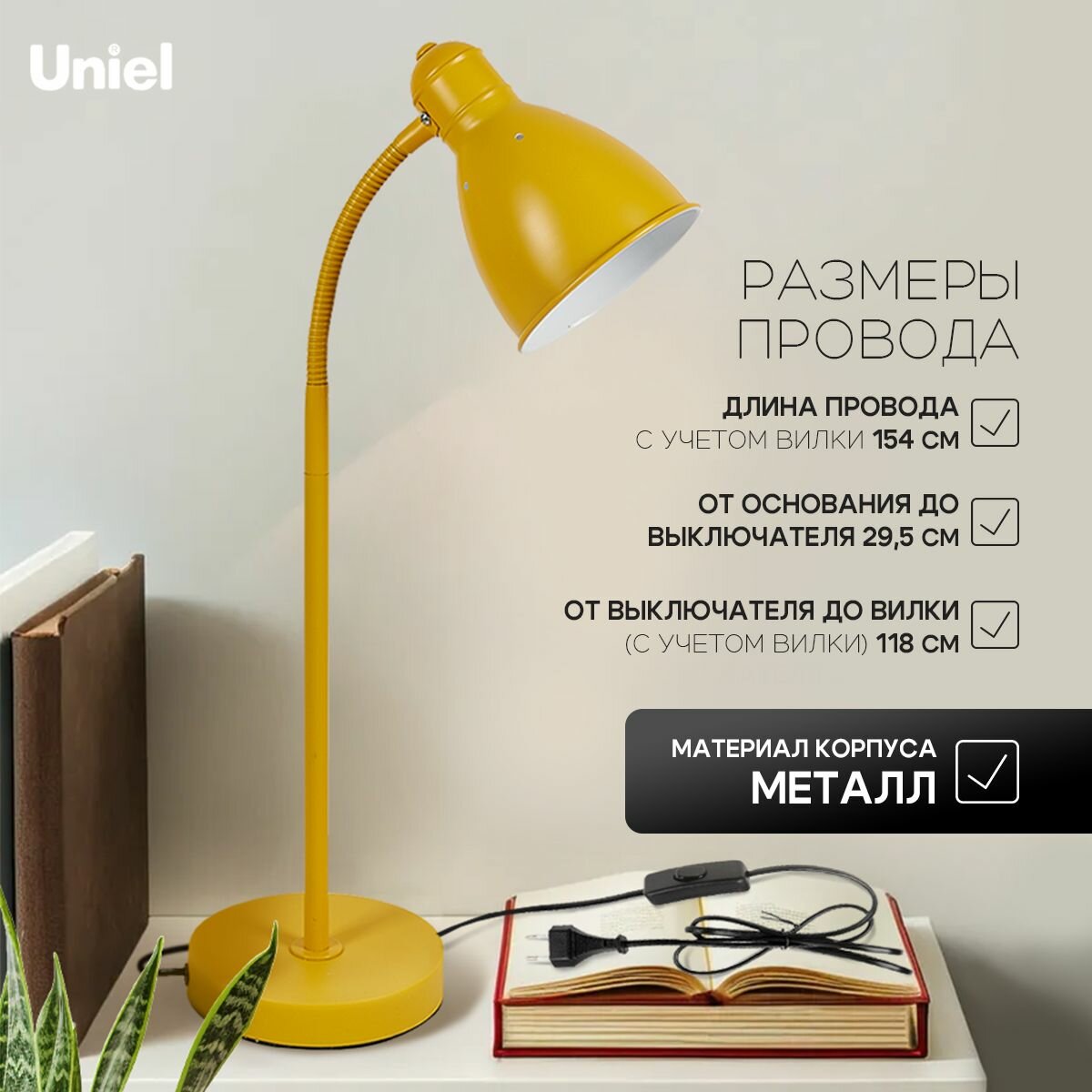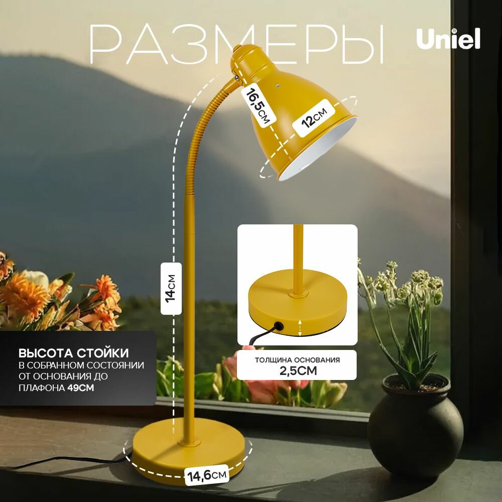 Лампа настольная, светильник настольный, под лампу Е27, 60 Вт, желтый, TM Uniel.: сравнение цен, характеристики, фото, актуальное наличие и цены.