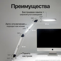 | Особенности | регулировка наклона и поворота плафона, регулировка яркости, режим ночника, складная конструкция |