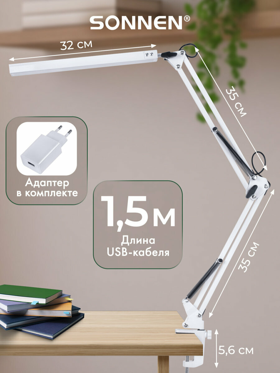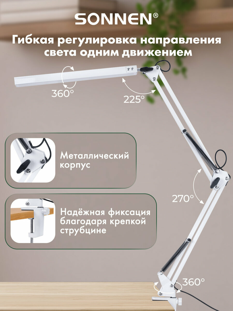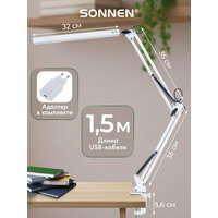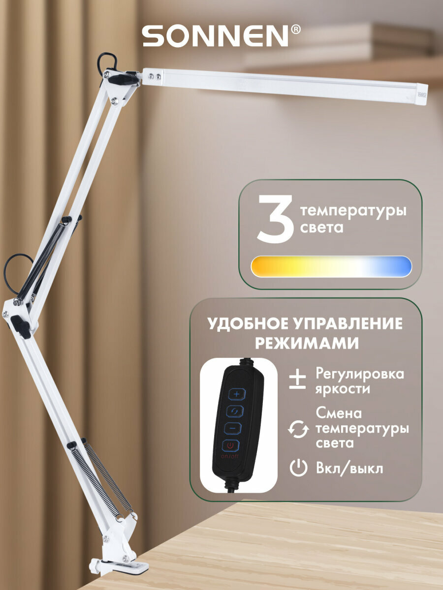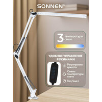 Лампа настольная, светильник светодиодный led на струбцине для офиса и дома, 14 Вт, высота 70 см, Sonnen, 238498: сравнение цен, характеристики, фото, актуальное наличие и цены.